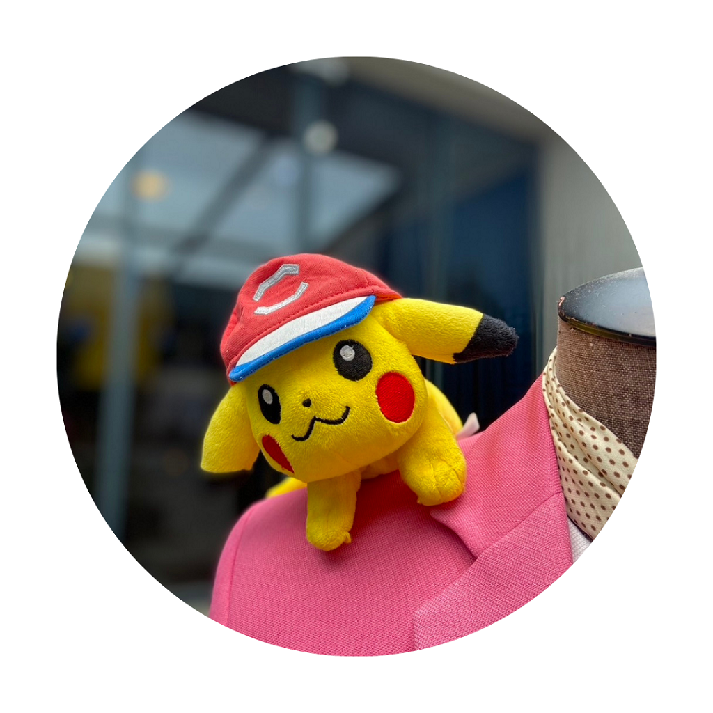 最令人驚喜的是,芳芳在這套西裝中加入了一個皮卡丘玩偶,成功地打破了西裝正裝與童趣之間的界限。