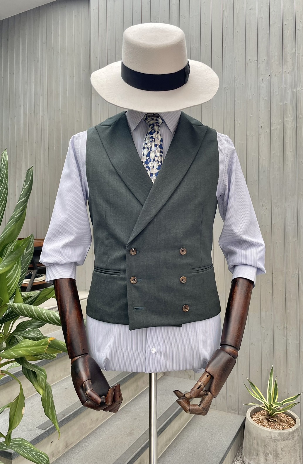 Oli 建議,在夏天可以選擇一件有領子的背心作為搭配的主角,不僅保持了西裝的正式,也大大降低了穿著的厚重感。在背心內搭配一件有細節的襯衫,如條紋或格子圖案,甚至是一件簡單的 T-shirt ,都能展現出不同的風格。
