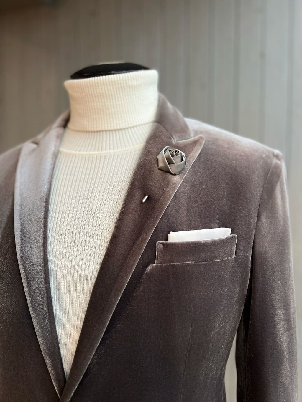 這款絲絨西裝沒有過多裝飾,讓布料本身成為主角,展現一種「無需多言的存在感」。